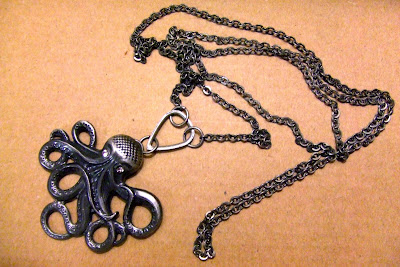 After making the feathered earrings, I continued on to make a super cool octopus necklace and 2 more Secret Keeper bottles to be able to put on chains later.